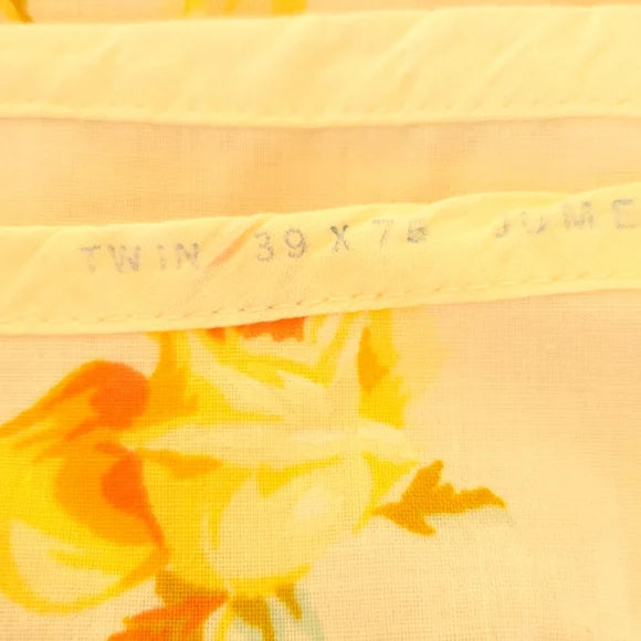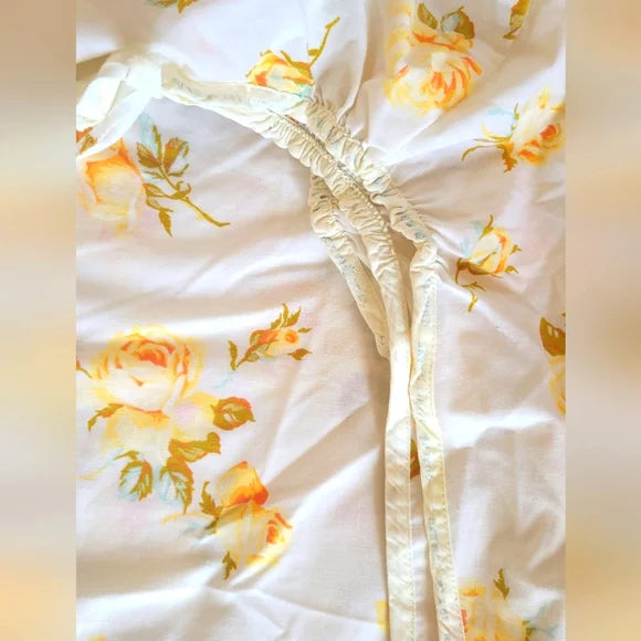 Fitted bottom sheet by Texmade with famous yellow rose pattern, reinforced edges and corners, 50/50 blend, 39x78. Very good pre-loved condition. (displayed on a double mattress so shows some slack due to not reaching all corners)