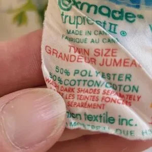 By Texmade, made in Canada, 50/50 cotton/poly content.