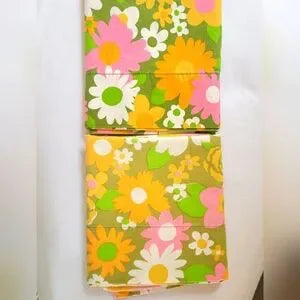 Pulled together by 2 flower power vintage cases by Sears, 19x30, 100% cotton. *both cases in very good vintage condition, however one shows more fading than the other, see photos.